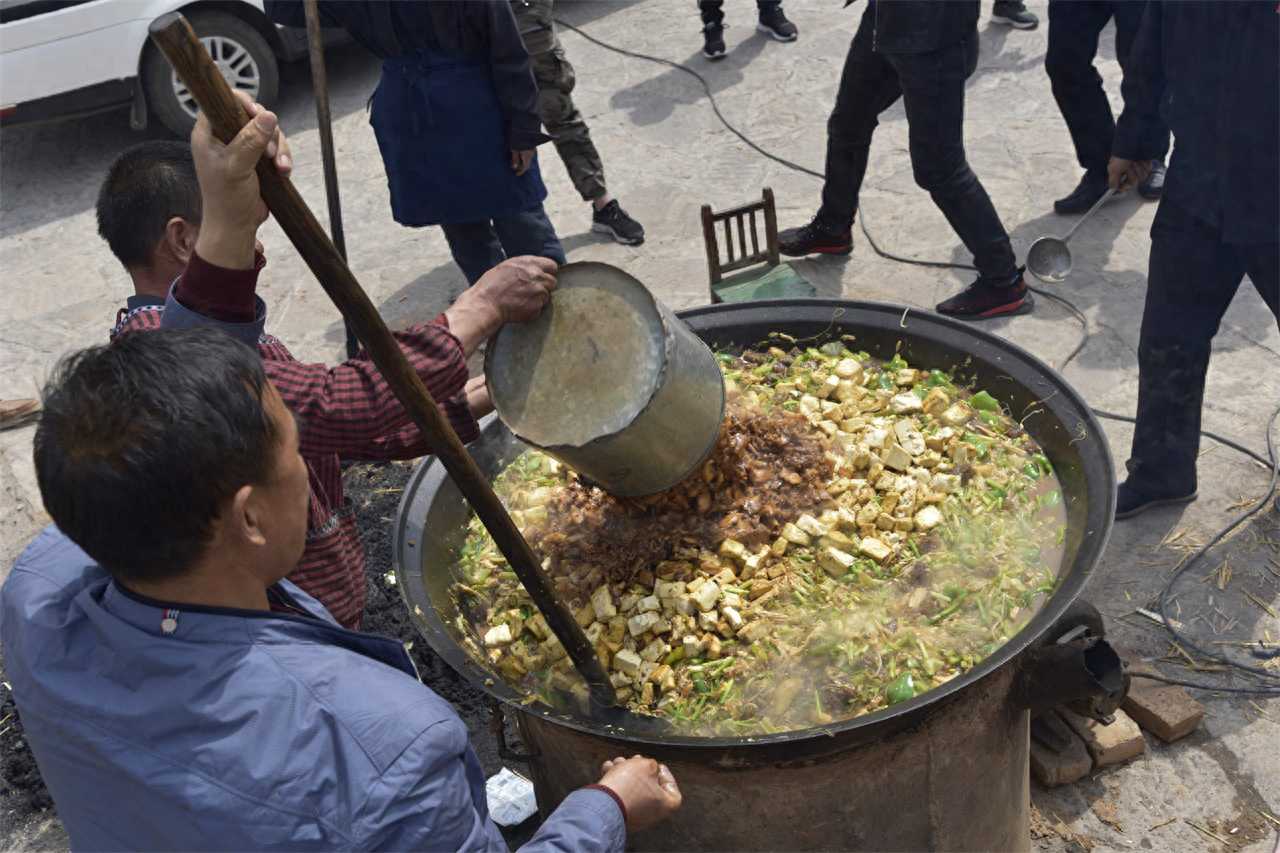 阳春四月,在河南鹤壁市太行山区王家辿村,一位乡村老厨师正拿着铁锹在一口大锅里翻菜,原来这里正在举办庆祝香椿采摘的活动,这锅大烩菜就是为了招待前来参加活动的一两百名游客。