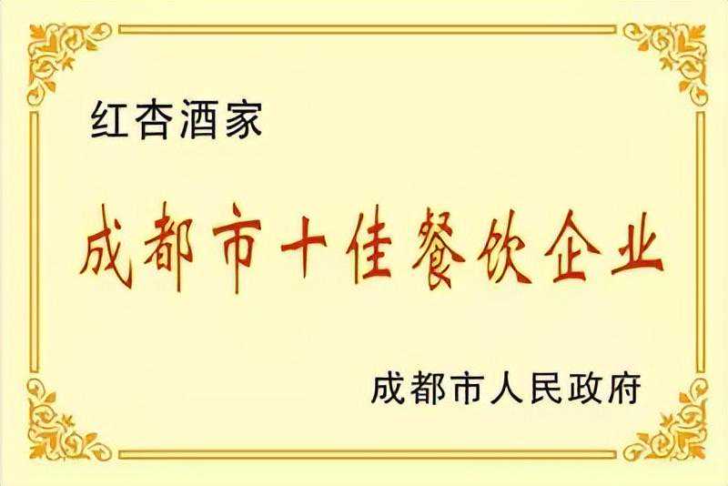 红杏酒家先后获得了“四川省著名商标”、“中华餐饮名店”、“全国餐饮业优秀企业”、“中国川菜畅销品牌”等多项殊荣。这些荣誉是“红杏”作为著名餐饮品牌的形象标志,红杏酒家已发展成为享有盛誉的著名餐饮企业。