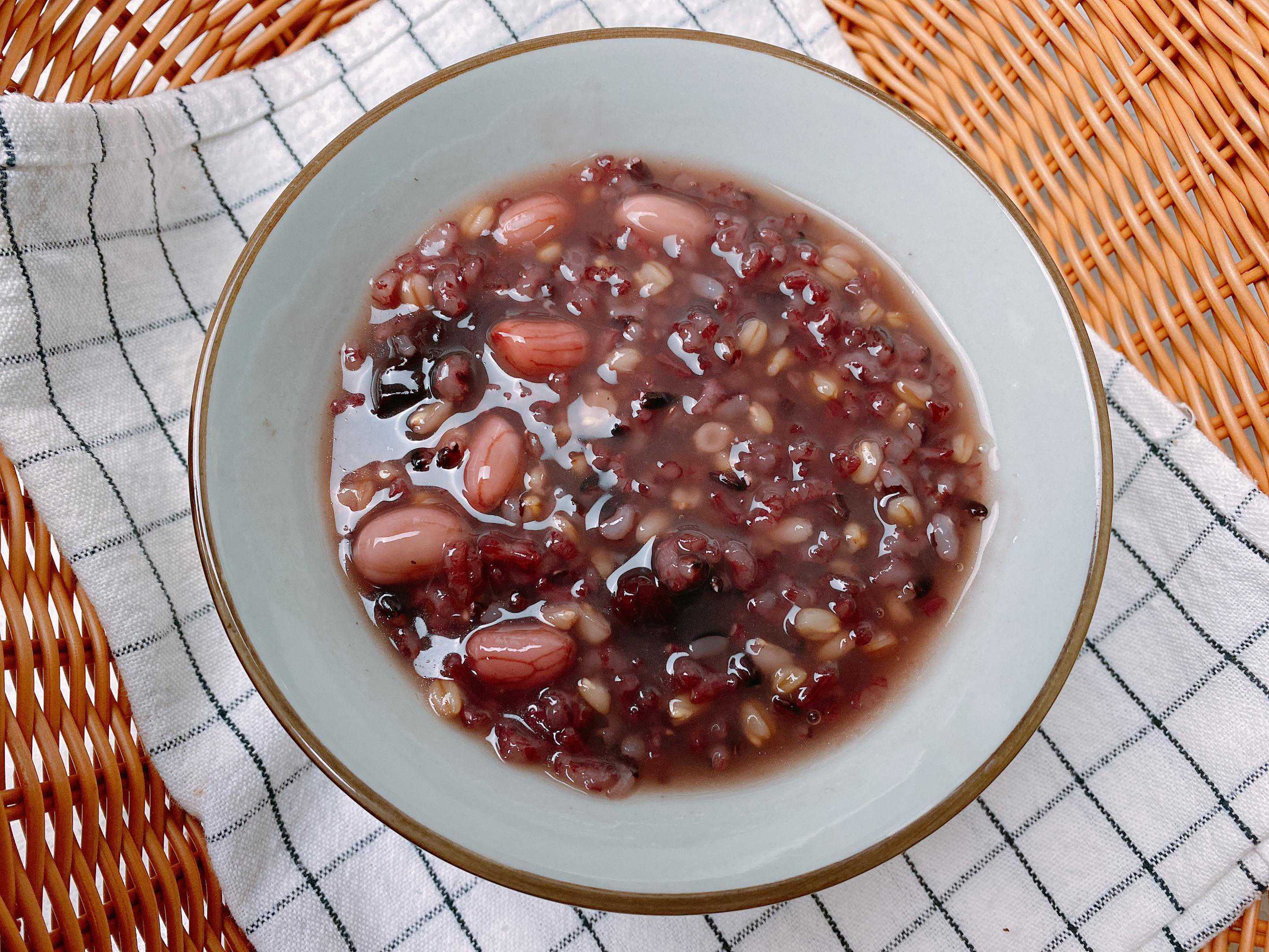 【原材料】大米30g、黑米30g、红皮花生30g、燕麦米30g、糯米30g、红枣适量;