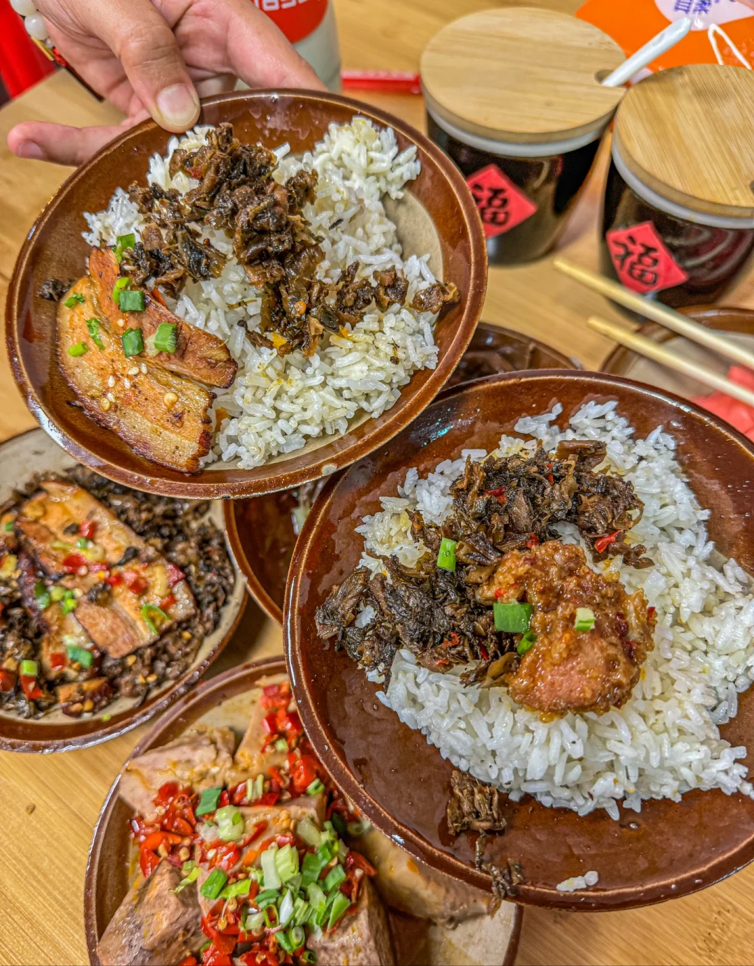 当时办公室楼下就有一家,主要的蒸菜都是以湘菜为主,然后还有一小碗的青菜,基本上人均15块钱能搞定,米饭和汤都是任意加,所以当时这个店的生意非常好,只要是下班时间,都是坐满的,我们有时候会提前点电话给老板,提前打包好。