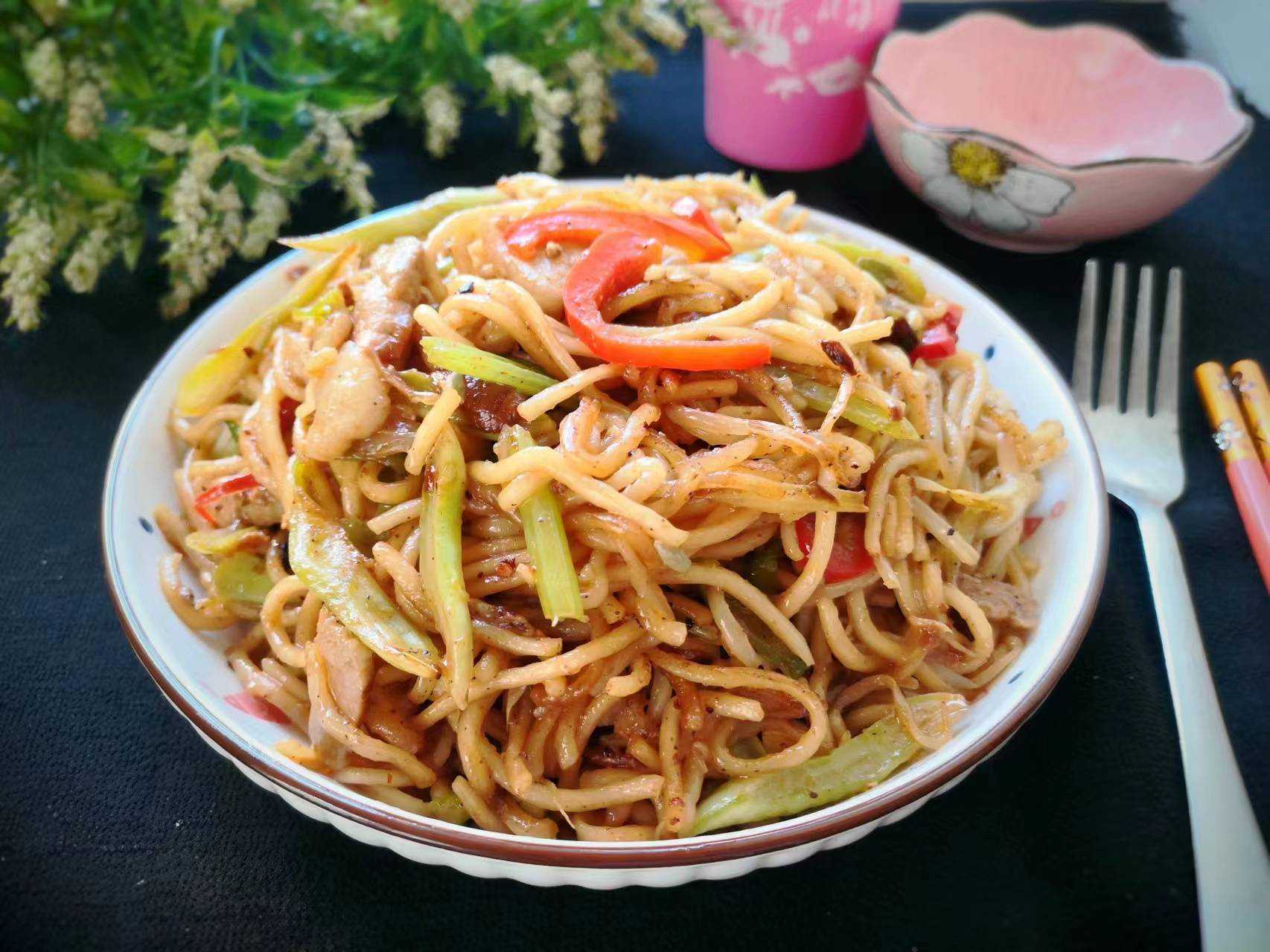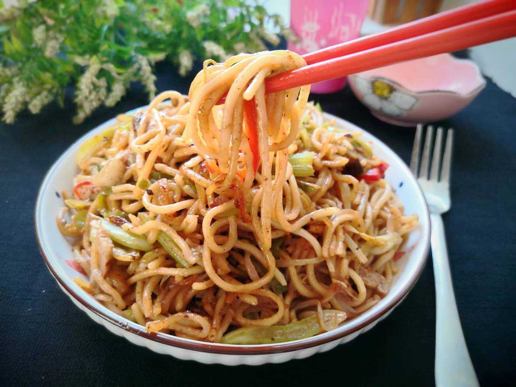 9、面条爽滑入味,有肉有菜,营养和味道都不错,夏季天热,吃炒面省心省事,让你瞬间胃口大开,实在太好吃了,值得一试哦。