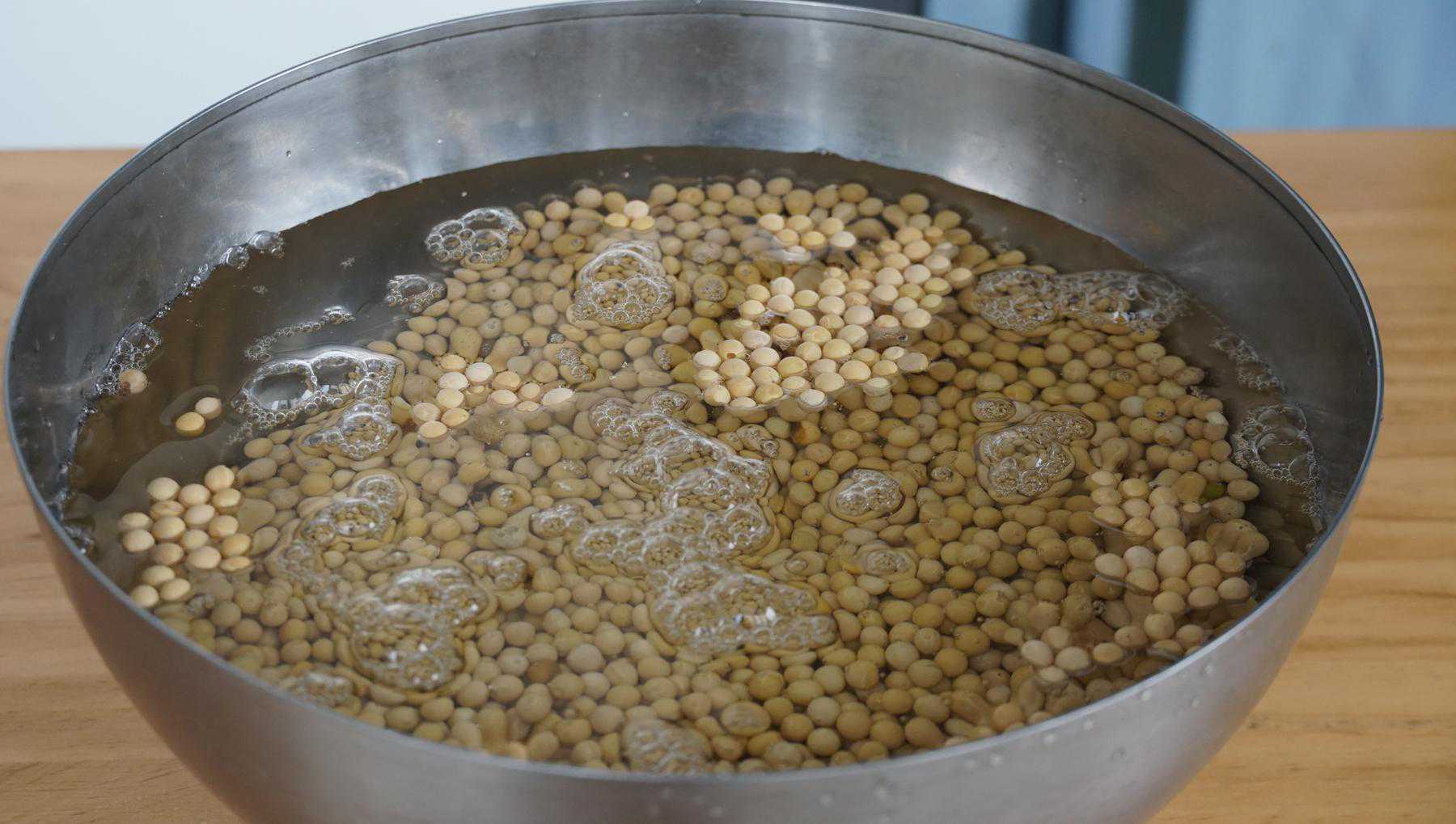 1、先来做豆腐,2斤生黄豆加水提前泡一夜。