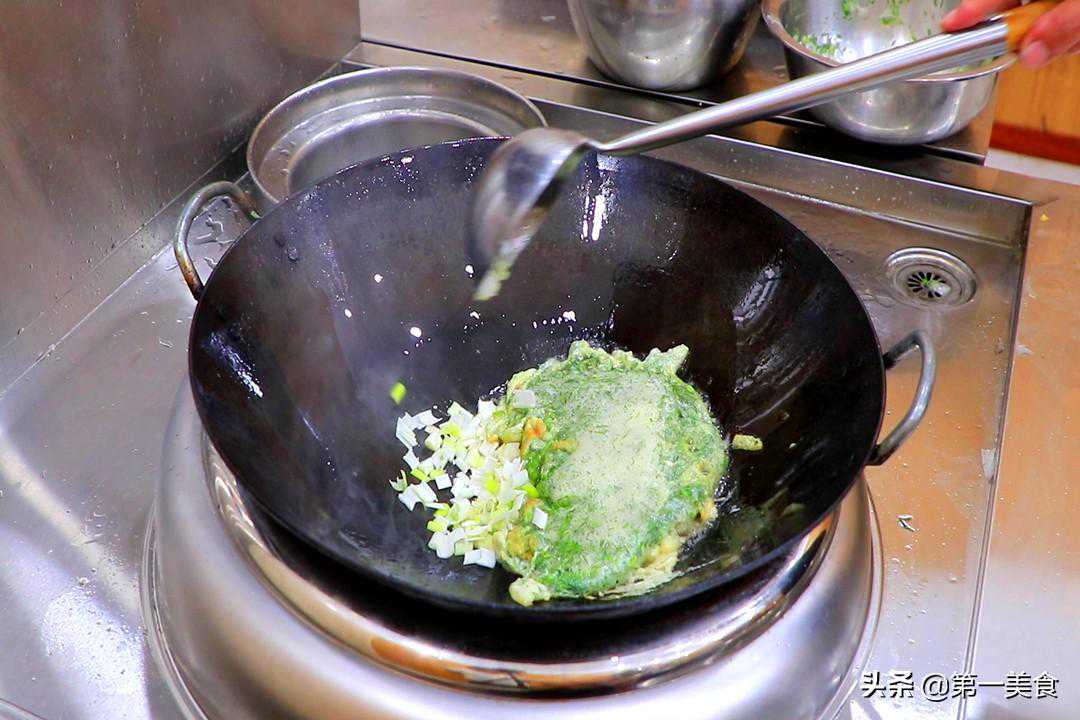 2.葱花不要撒在鸡蛋上,炒香以后再融合,才能释放香味;