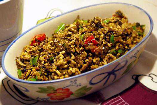 简介鸡米芽菜用料大红椒;二荆条辣椒;鸡胸脯肉;芽菜;郫县豆瓣;芝麻;生姜做法1、鸡胸肉切米粒大小;芽菜用水洗净,沥干水分,红椒生姜切粒备用。2、在鸡肉中调入盐、生粉、料酒和些许胡椒粉拌匀腌制2小时以上。捞出沥干。3、锅内热油至7成熟,下鸡肉滑散,炒至变色,捞起备用。4、锅内留油,改中火,下入花椒姜粒爆香...