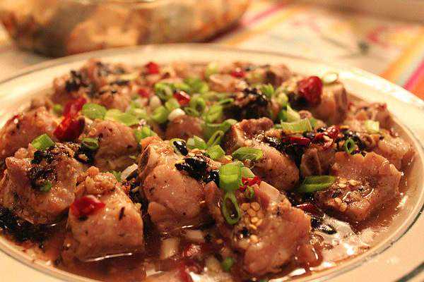 然后用料酒,蒜泥,豆豉,水淀粉,鸡精,糖拌起(不要给盐,因为豆豉盐味很重,一蒸味道就出来了),放盘