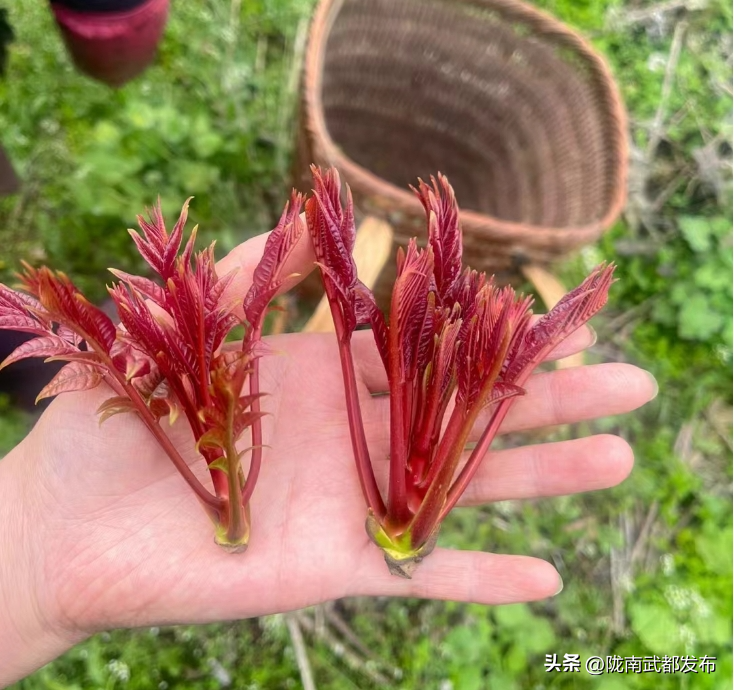 当它的嫩芽长到一手指长时,就可以摘下来吃了。香椿炒鸡蛋,切成香椿沫沫拌凉面,满口飘香。