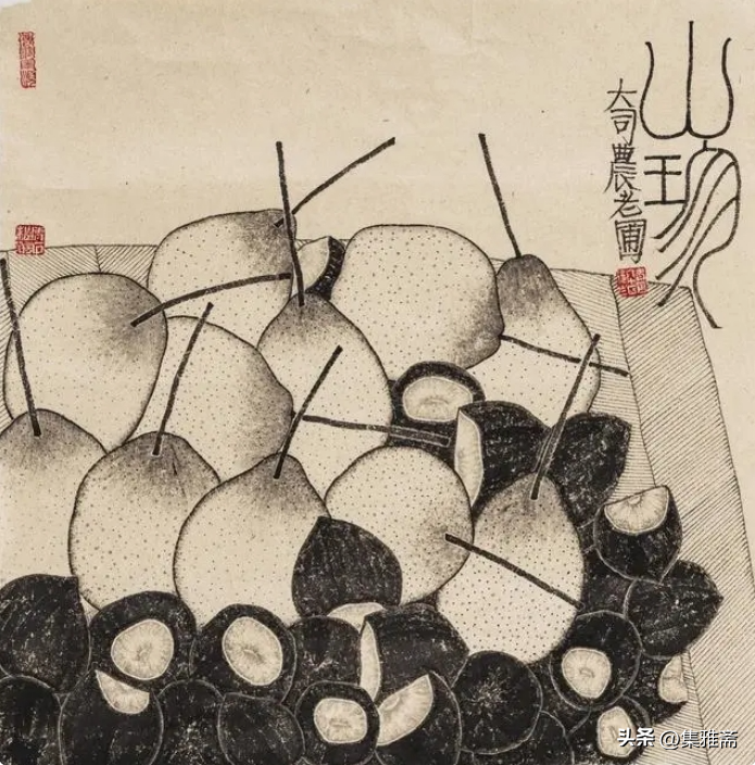 他能将自然界中简单的食物融入独特的审美,具有一定的艺术境界。一支画笔绘画出了质朴,一幅墨迹表现出了清雅,一张纸表现出简洁的中和之道,他的画如其人,绘画清新、质朴。
