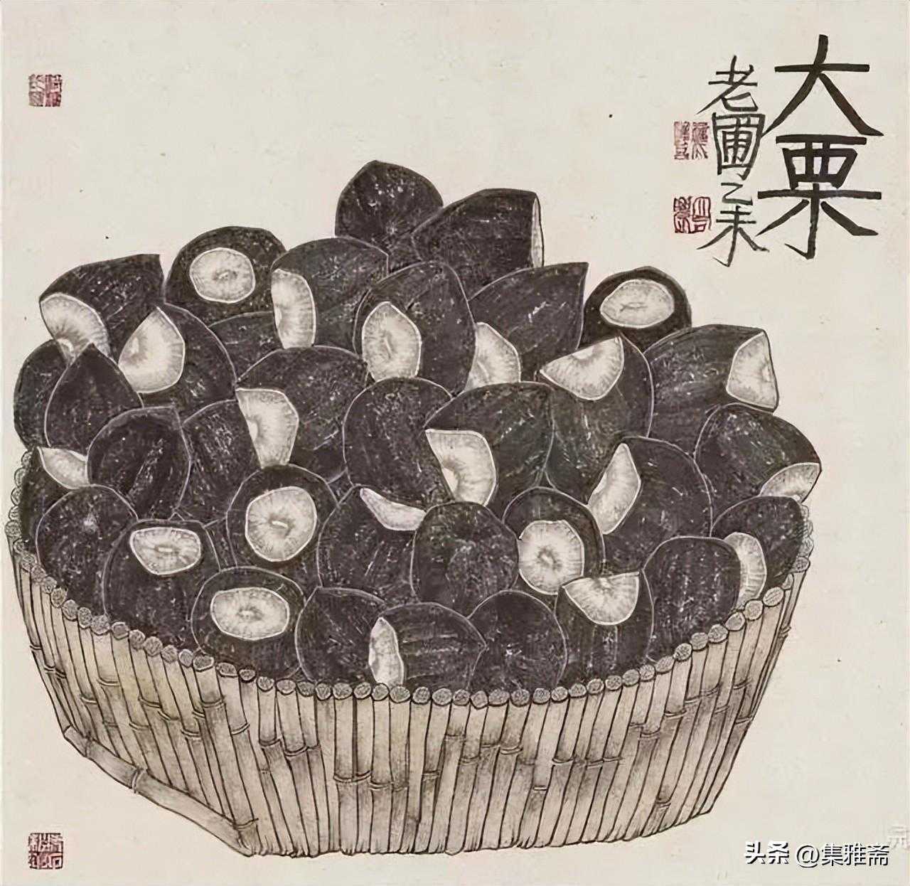 一身素色唐装,说话慢条斯理,举止淡定、儒雅大方。这是老圃先生给大家的第一印象,走进他的作品,农民伯伯田里长的栗子、南瓜、梨儿、茄子等跃然纸上,自古文人墨客常把“梅兰竹菊”作为一种崇高的精神寄托和追求。而老圃对中国文人画在传承的基础上开辟了新天地。