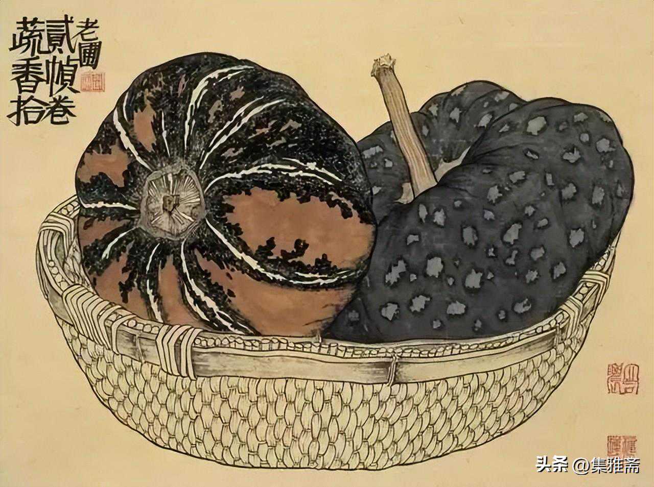 荆浩在《笔法记》中强调作画要“图真”。曾言“似者,得其形,遗其气”,“真者,气质俱盛”。而老圃所提倡的对生活写真,是在本质上做到了“传神”和“得其气韵”。他借助具象的写实语言来表现抽象的情感流露,用一筐筐充满生活温情与朴质馨香的瓜果菜蔬,抒写着最真实的田园物产,也借此反映了他对乡居生活的热爱和回望。