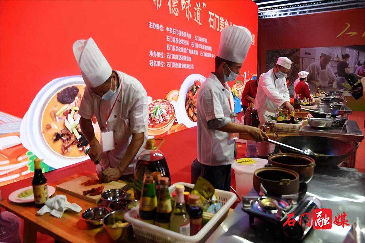 今年4月开始,石门县餐饮协会组织300多家宾馆、土家特色餐饮店、山寨、乡村铺子、农家乐根据石门食材资源优势和土家文化美食特点,结合传统的土家特色菜,推出了石门肥肠、石门腊肉、湘佳土鸡、清炖人工娃娃鱼、石门饲养岩蛙、石门和渣等19道土家特色菜谱。