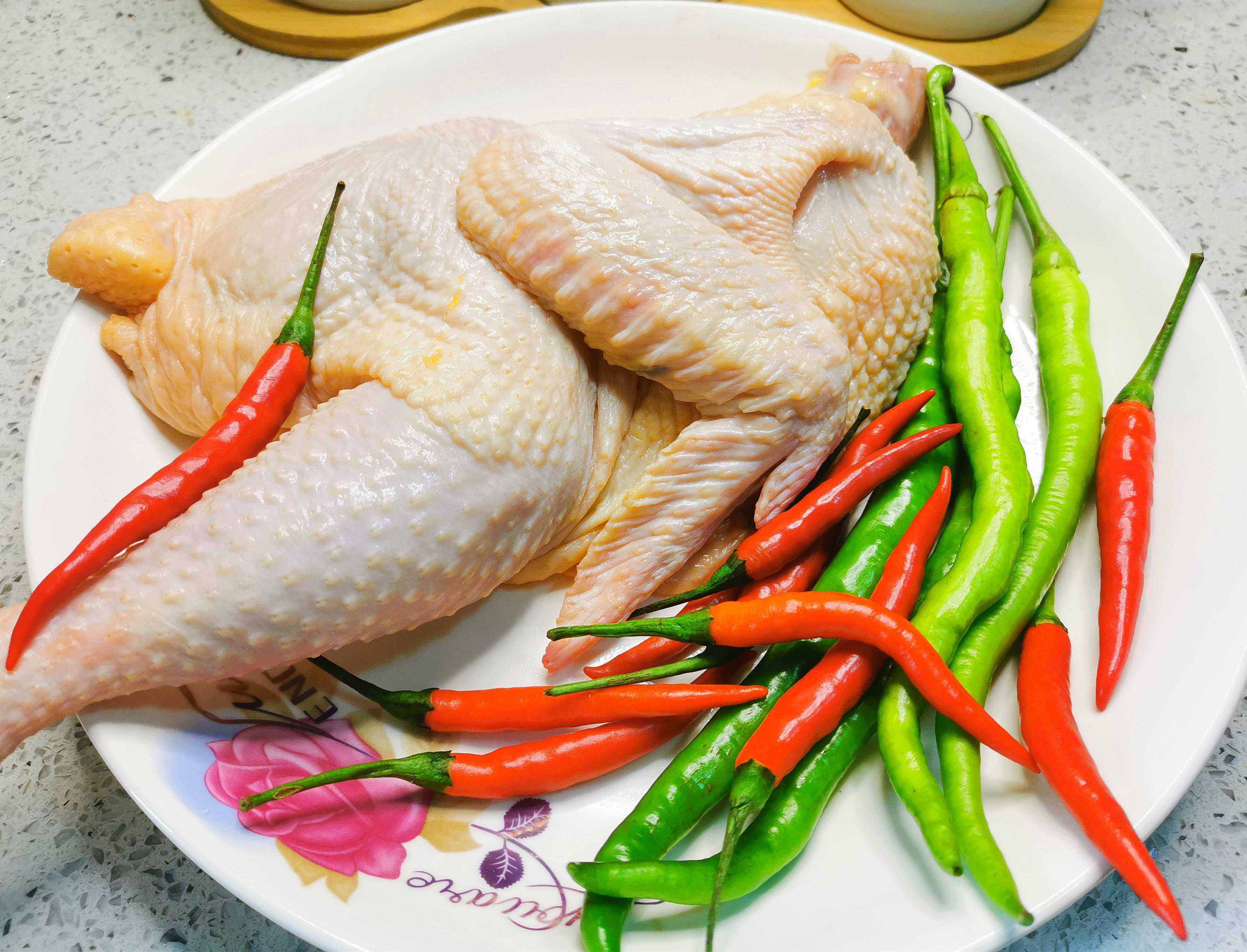 准备做尖椒鸡的食材