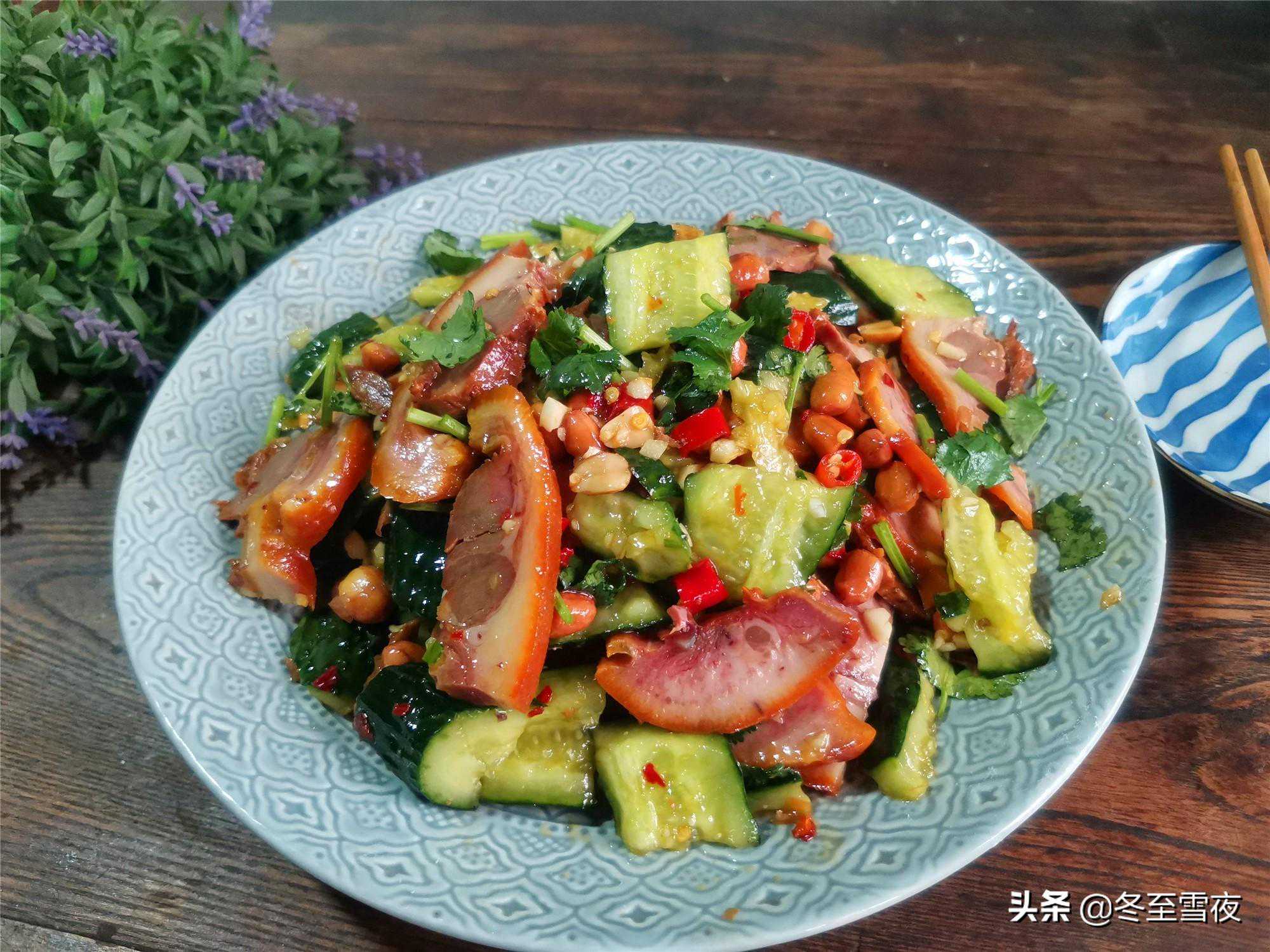 【猪头肉拍黄瓜】所需材料:猪头肉(熟)半斤、黄瓜2根、香菜1棵、油炸花生米半碗、小米辣5-6个、油盐适量、生抽2-3汤匙、白糖半汤匙、米醋2汤匙、干辣椒末1汤匙、味精少许、