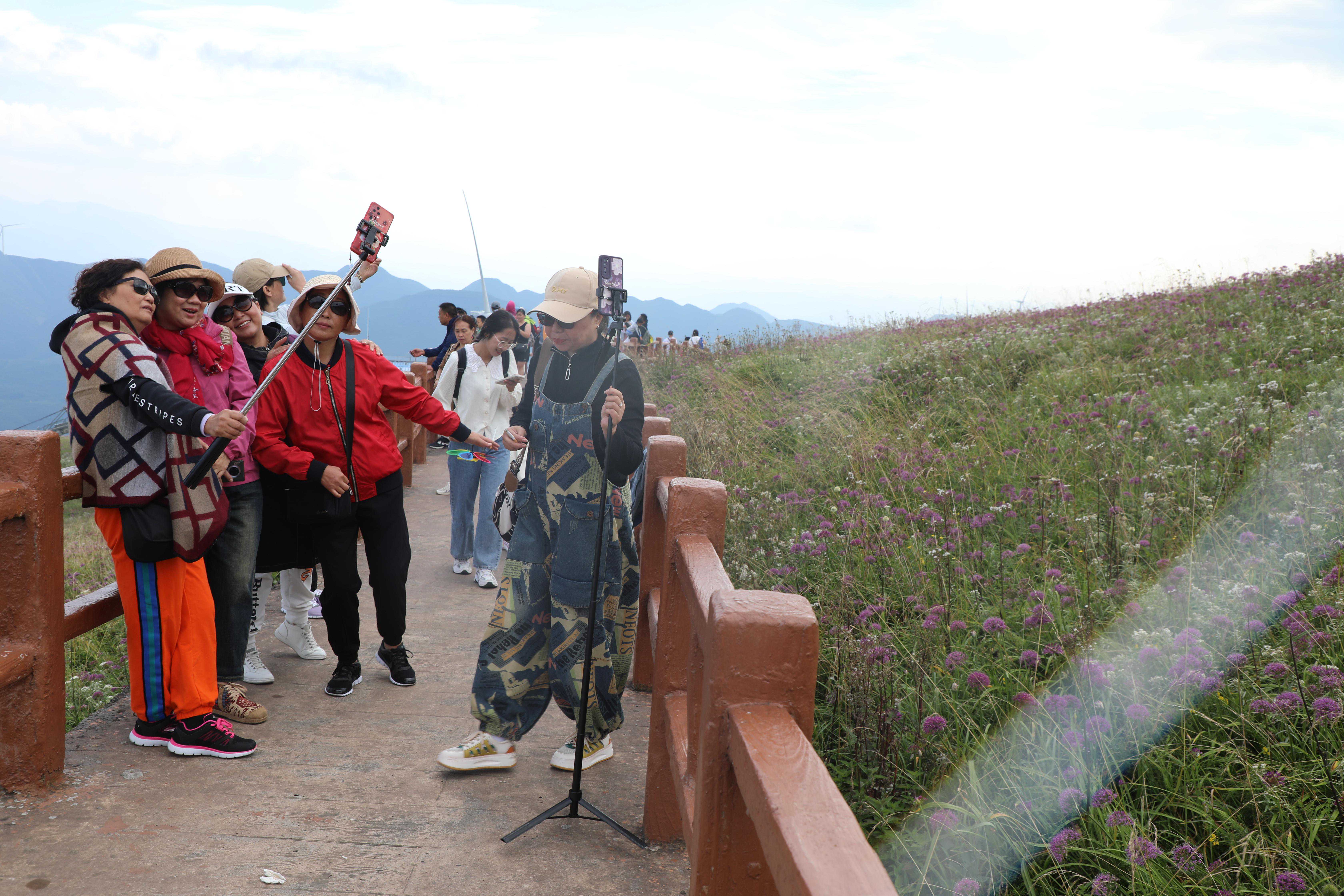 游客打卡拍照,陶醉韭菜花海