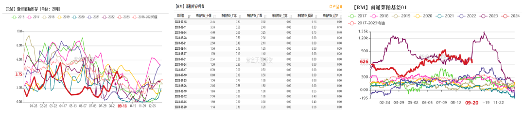 菜粕库存基差:Q3低位累库基差偏强运行