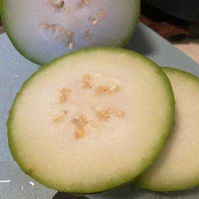 1、冬瓜洗净,去皮(熬酱去皮,直接煮茶的不用去皮)籽保留,冬瓜籽有药用价值,润肺化痰和利水等等,自己度娘哈
