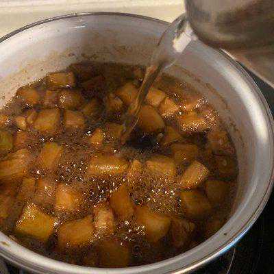 5、煮一会后水减少了,再加一点开水,小火慢慢把冬瓜煮软烂,搅拌不要糊锅。