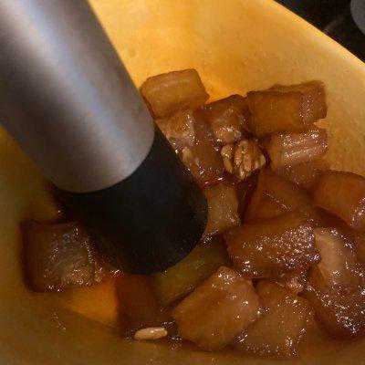 6、冬瓜软烂了但不易化(是不是和品种有关?)没耐心的可以像我这样压烂它们!或者用料理机打烂回锅(就是清洗料理机好麻烦)