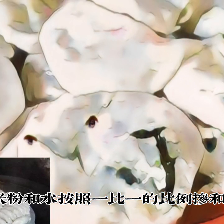 制作馅料皮时,将粘米粉和水按照1:1的比例混合,加入少许盐和食用油。将粘米粉倒入开水中,用小火搅拌至结块,然后关火,继续用锅铲搅拌。等面团温度下降后,用手揉成均匀的面团,也可以用擂茶棍或重物快速敲打或揉搓面团。揉好的面团非常重要,决定了粿皮的口感。