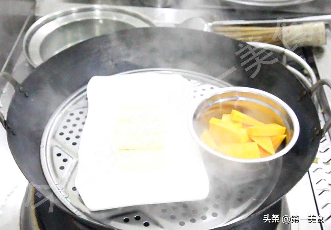 锅内烧水,放上蓖子,水烧开以后放入山药和南瓜,盖上盖子小火蒸12分钟即可。