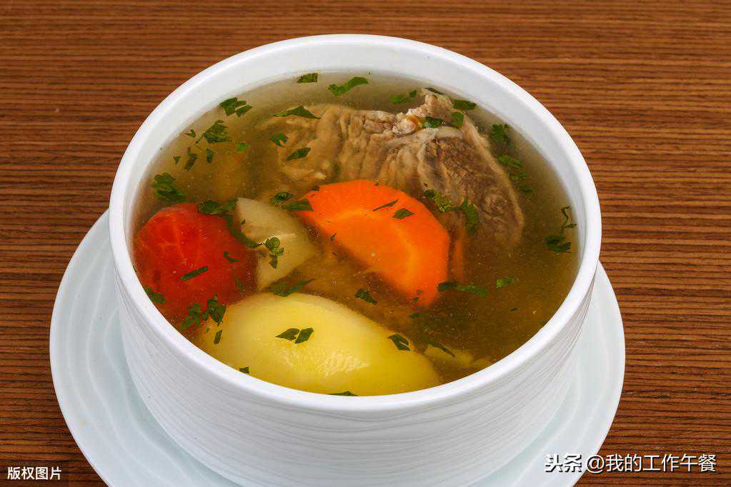 第十三道:土豆胡萝卜牛肉汤食材:牛肉300克,土豆1个,胡萝卜1根、盐少许