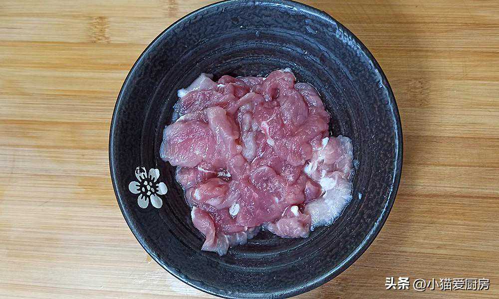 【步骤一】:把瘦肉清洗干净后切成和硬币厚的薄片,放入碗中,放入提前泡好的葱姜水、盐小半勺、胡椒粉1勺、料酒1勺,然后用手抓拌均匀后腌制10分钟。