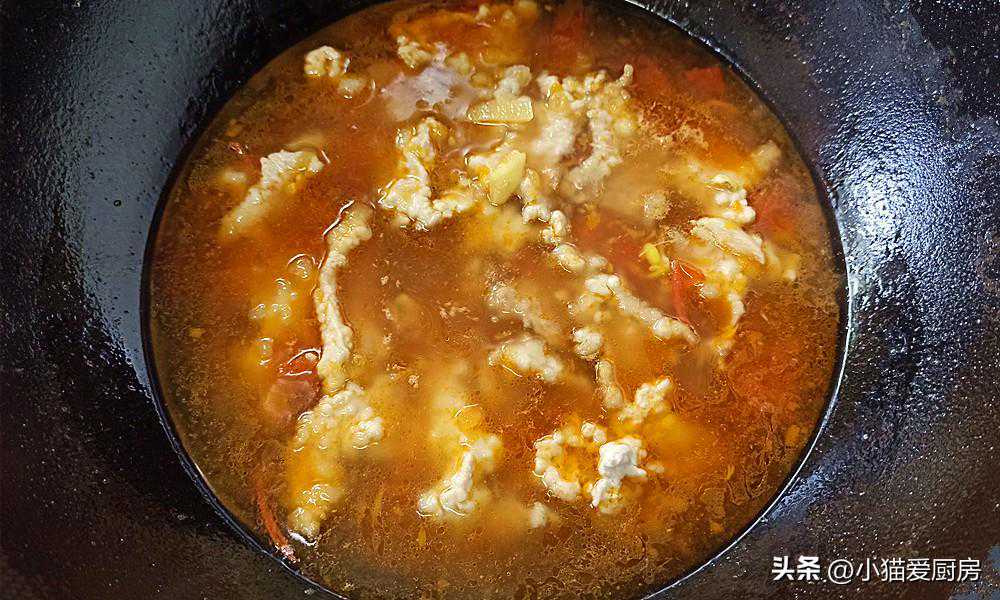 (5)西红柿要炒出汁,炒出汁西红柿才出味,同时要多炖煮一会,把酸味炖出来。