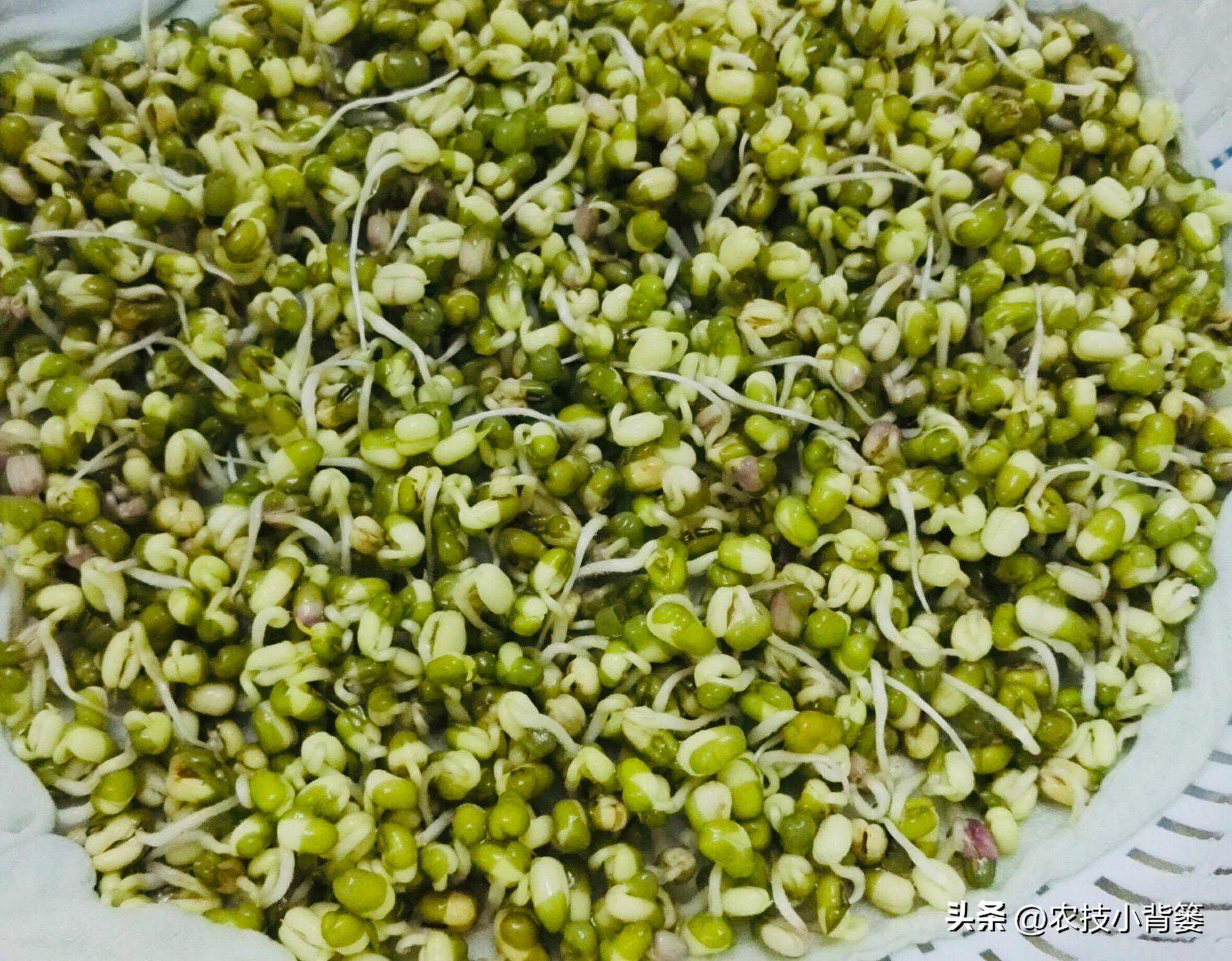 这类说的芽苗菜,包括用绿豆种出来的绿豆芽、用黄豆种出来的黄豆芽、用豌豆种出来的豌豆芽(吃嫩芽)以及用萝卜种子种出来的萝卜芽苗菜(吃幼苗),这些芽苗菜有个共同的特点——用种子在湿润弱光甚至完全不见光的黑暗环境条件下快速催生幼嫩芽苗,然后我们吃的就是这些通过种子刚生长出来的嫩芽和幼苗。