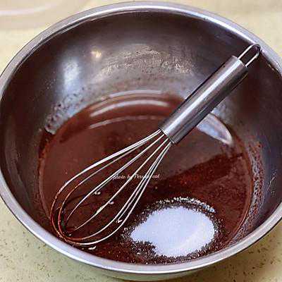 2、融化的巧克力奶加入玉米油搅拌均匀;