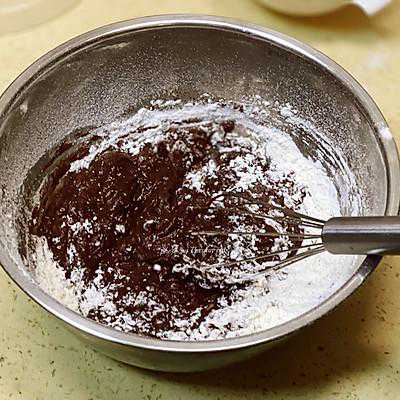 7、然后混合蛋白和巧克力蛋黄糊,翻版均匀防止消泡;
