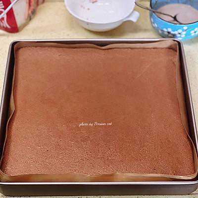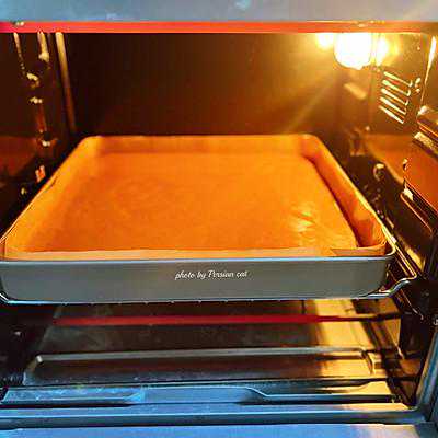 10、出来的蛋糕面非常细腻光滑,出炉后倒扣撕开油布晾凉;