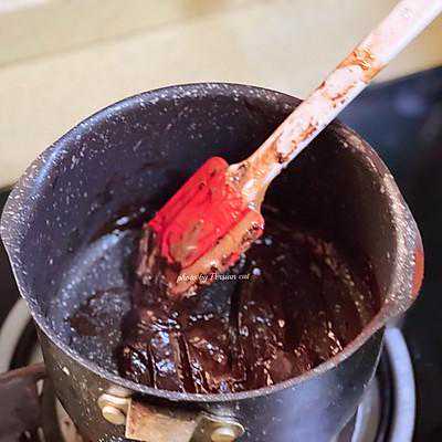 11、制作巧克力奶油,黑巧克力加入1勺牛奶加热融化;