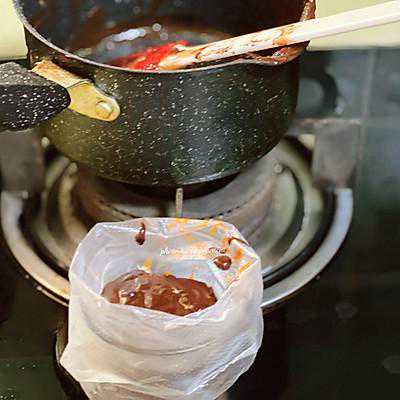 16、然后装进裱花袋,稍微等凉和固体一点;