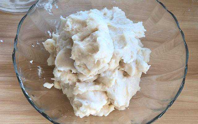 第三步:往绞肉机里面加入15克冰水,然后搅拌(每次加15克水,再搅拌,重复3次);再加入30克木薯淀粉,继续搅匀至细腻的状态,最后把鱼肉倒入大碗中备用