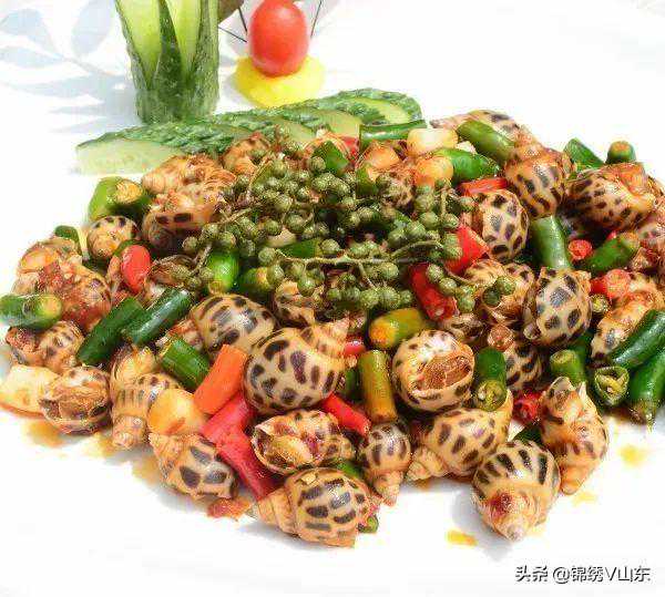 1.把花螺放入加有几滴菜油的清水盆里,饿养一天,让其吐出污物,将其淘洗干净并初加工,捞出来待用。