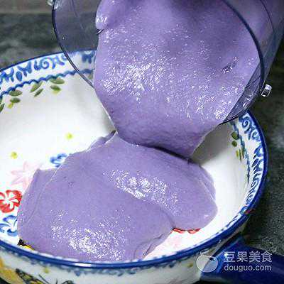 5、绞成紫薯泥后倒入容器中