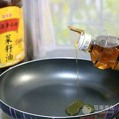 11、锅内倒入金龙鱼外婆小榨菜籽油