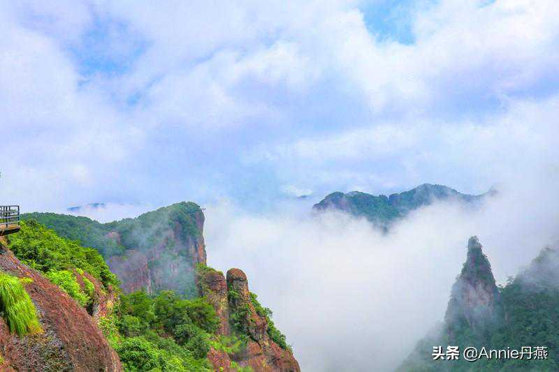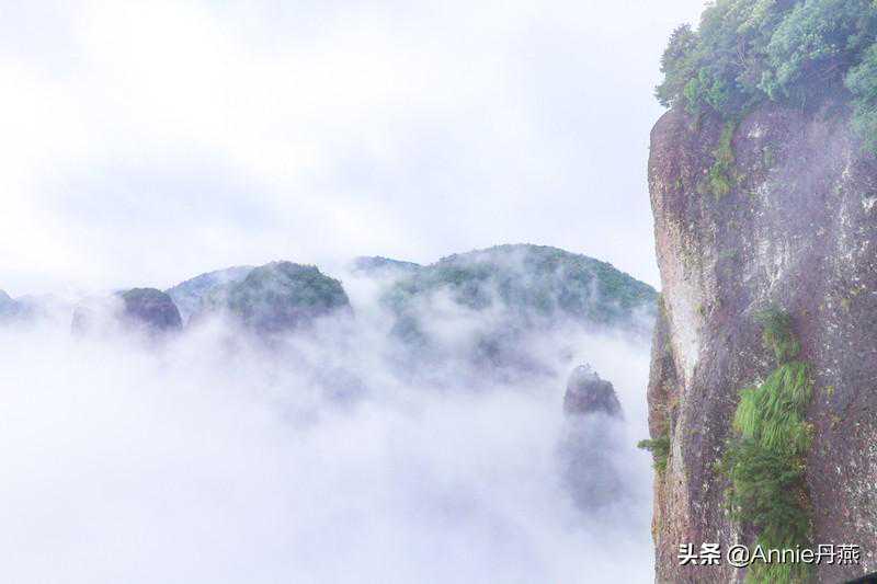 耸拔崎峋的峰石身上长满草木,郁郁葱葱,也只有遇到雨后初霁,才会是这般薄雾缭绕,恍如海市蜃楼,眼前这般景象无疑是一幅轻烟淡彩的水墨画卷;虚灵如梦,虚虚实实的景象,又犹如诸佛列坐,潜心听经,梵音隐隐传来,甚是静穆和辽远,有着独特的禅美视觉意境。