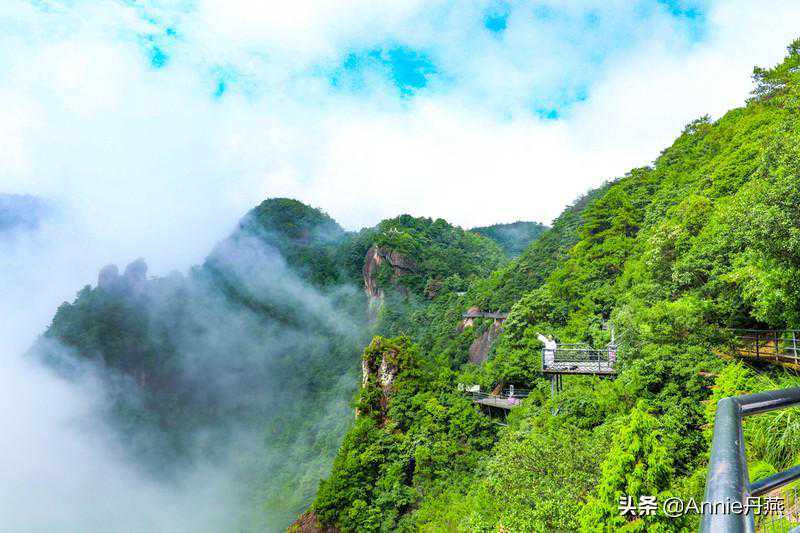 沿着宛如游龙的游步道行走,脚下全是悬崖栈道,旁边则是深谷涧壑,万丈深渊,险要处仅可容身。但在云雾中若隐若现的高峰却神奇秀美,人行走其中,更是平步青云之上的体验。在栈道上,俯瞰脚下的万丈深渊,是“扶摇直上九万里”的惊心动魄,又是深不见底的林海莽莽。