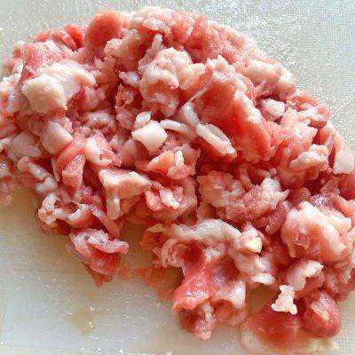 4、五花肉片切小丁