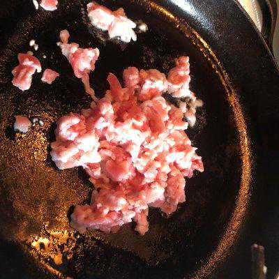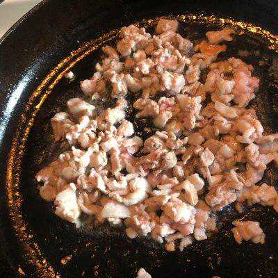 5、锅中倒油,把五花肉丁放入锅中煸炒