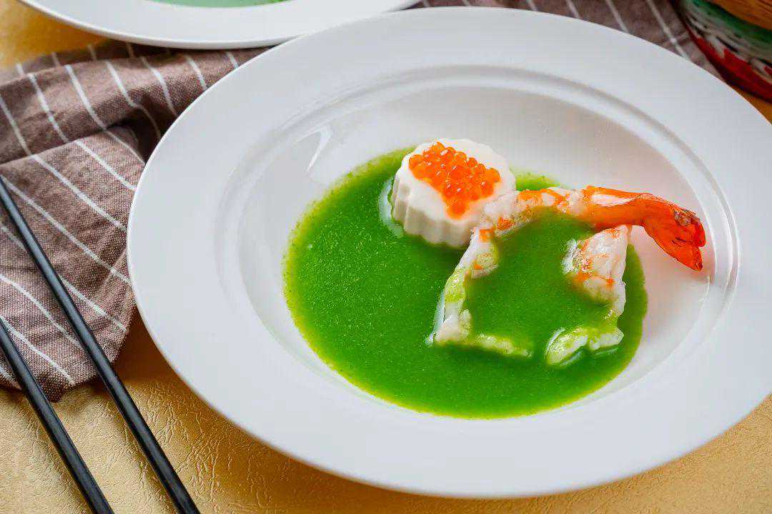 海鲜是潮汕风味里必不可少的食材之一。这一道曾荣获岭南名菜特金奖的“翡翠啵啵大明虾”,就是以一种新的思路演绎潮菜。