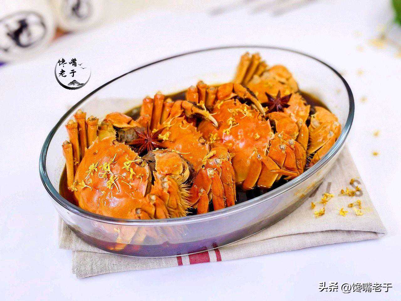 步骤三:当螃蟹和料汁全部放凉后一同倒入容器中,盖上盖子后放入冰箱冷藏6个小时,吃的时候,再撒上一点桂花就可以食用了!