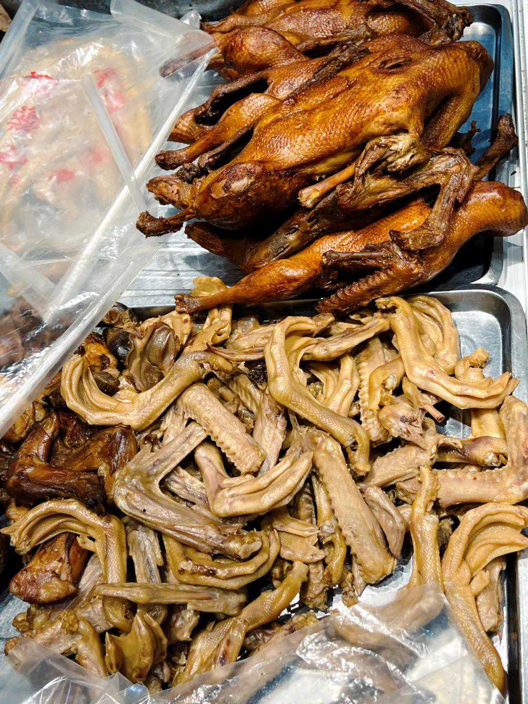 2.原料一定要新鲜,一般只选当天宰杀的牲禽,从宰杀到使用绝不会超过8小时。为保证卤水的质量,好的老卤店绝不会用冻品。