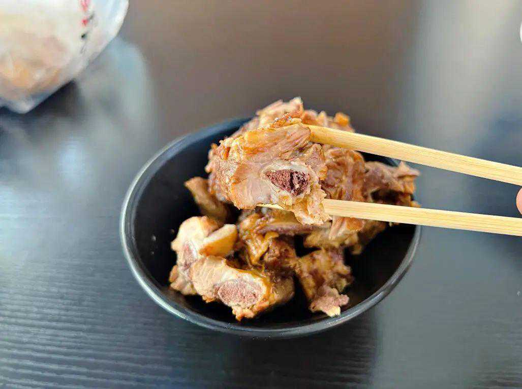 招牌的五未排骨62.8元/斤,买了一根大约40元。虽然是冷的卤排骨,但凉着吃也不腻,排骨选的肋排,肉厚入味,卤水柔和,带着老酱油的咸香味儿。