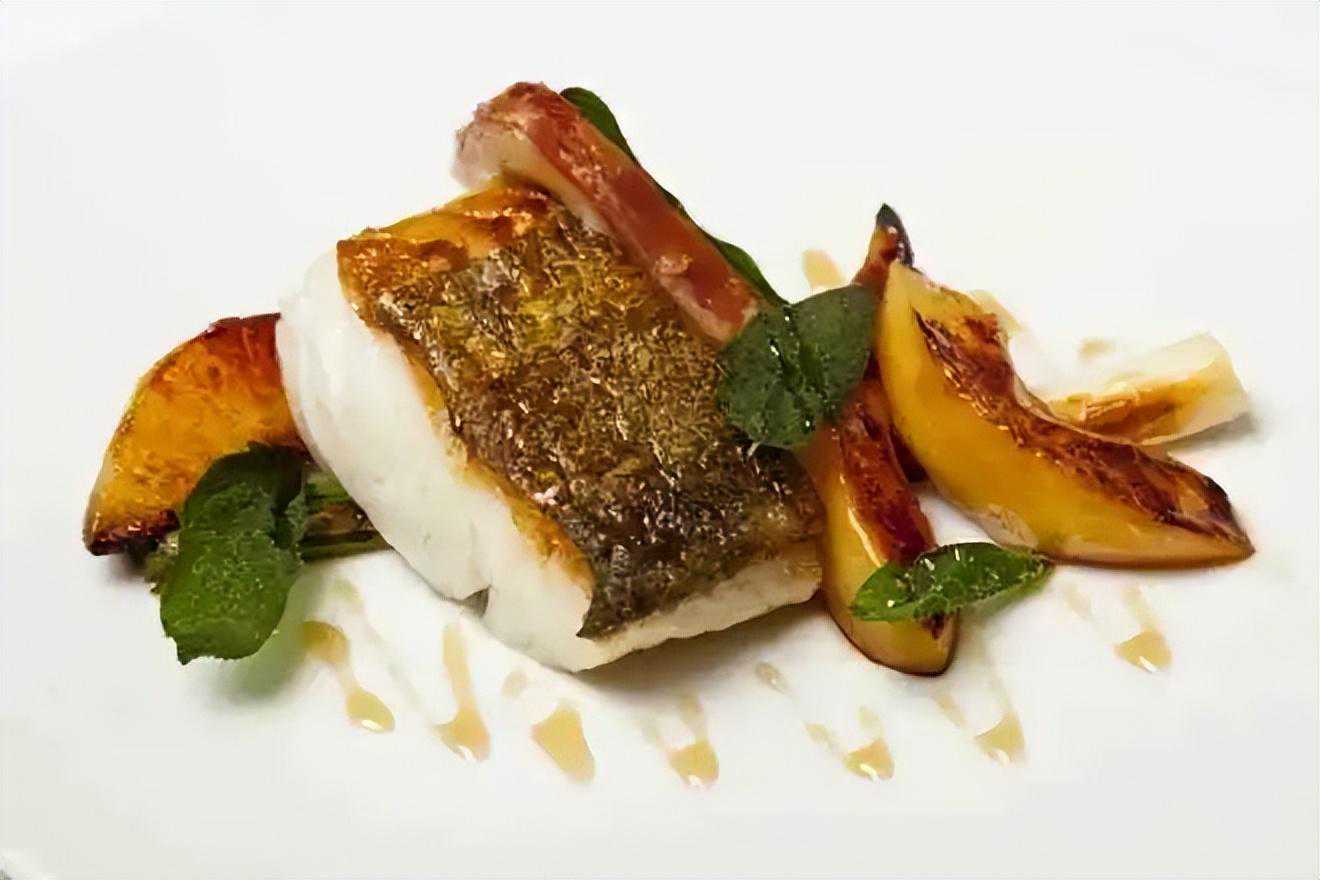 Richard所创的这道鳕鱼料理也引入了榲桲的独特风味,让榲桲果肉在焦糖中文火慢煮,直至呈现蜂蜜般的金黄色泽。焦糖榲桲与香煎鳕鱼的风味碰撞颇具巧思。