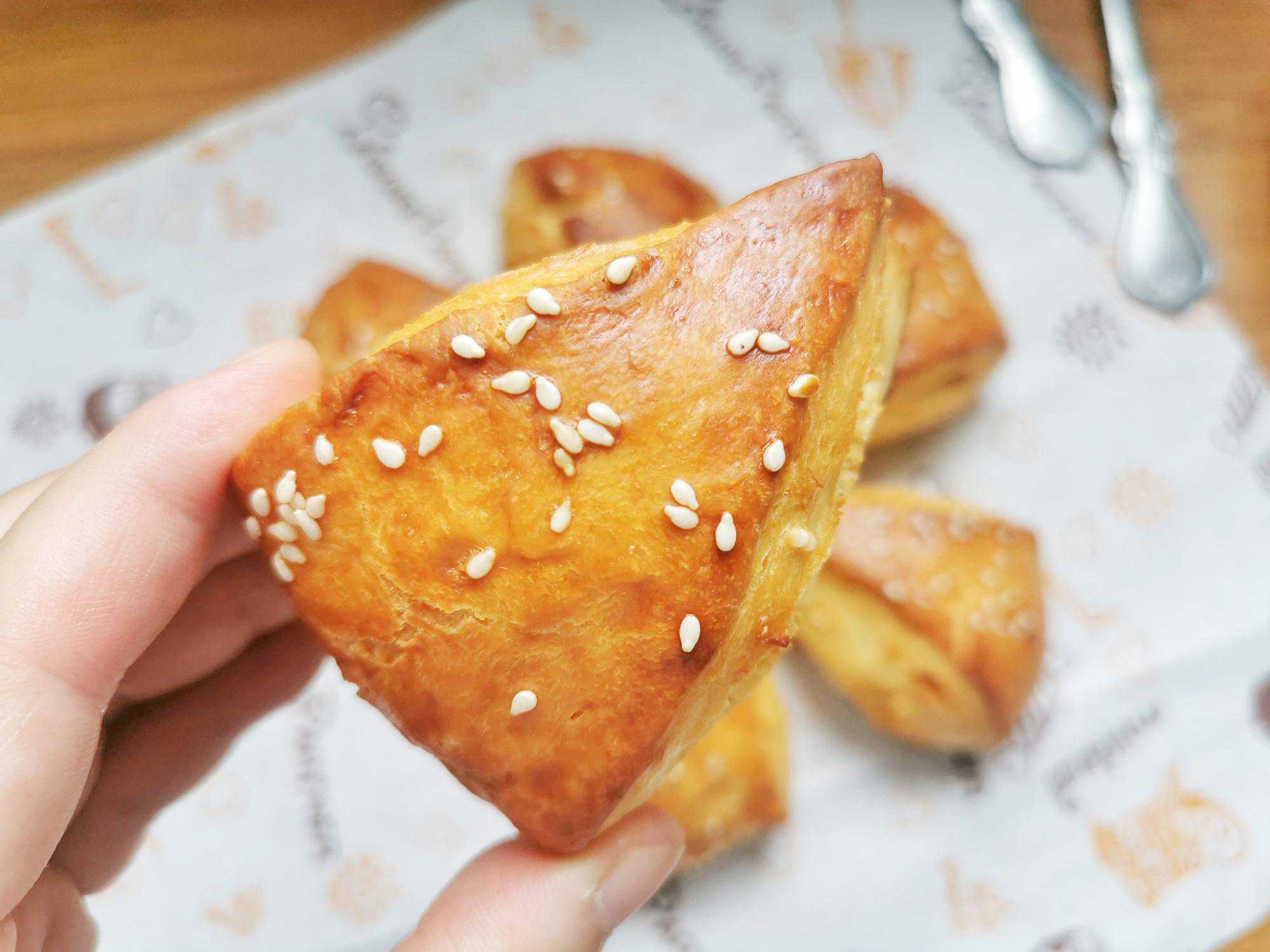 【肉松司康】主要食材:低筋面粉200克,牛奶70克,白糖15克,酵母粉2克,泡打粉1克,黄油或者食用油40克,草鸡蛋1个,芝麻适量,肉松适量。