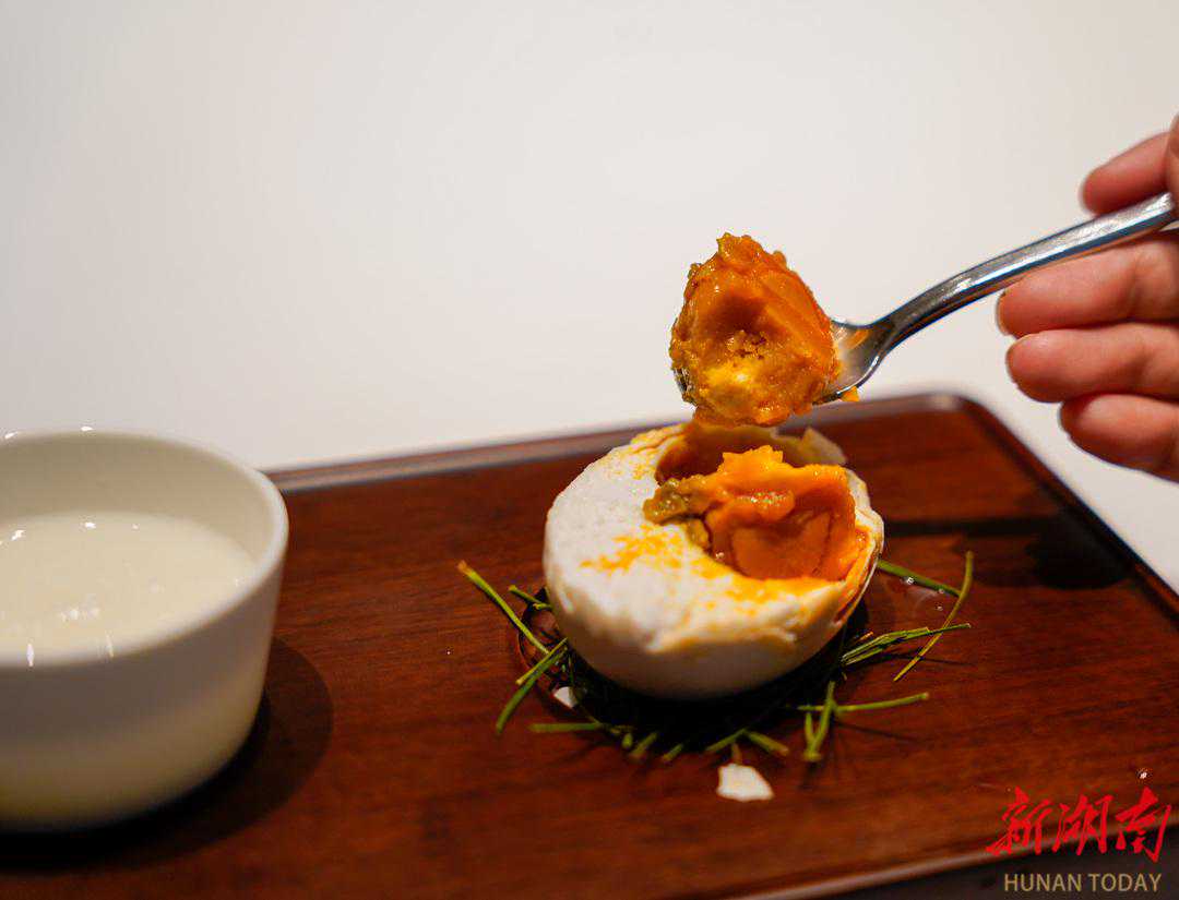 还有一道非遗高邮的双黄咸鸭蛋。最早知道高邮,并且与咸鸭蛋紧密关联,是因为多了汪曾祺先生的文字。然后大家对传统节日的越来越重视,这种带走节气属性的吃食,也变得越来越精致了。