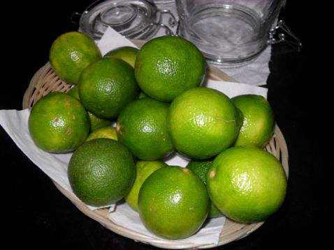 将玻璃瓶放在阴凉处存放一个月,青柠已经变黄了,并且有汁水渗出。