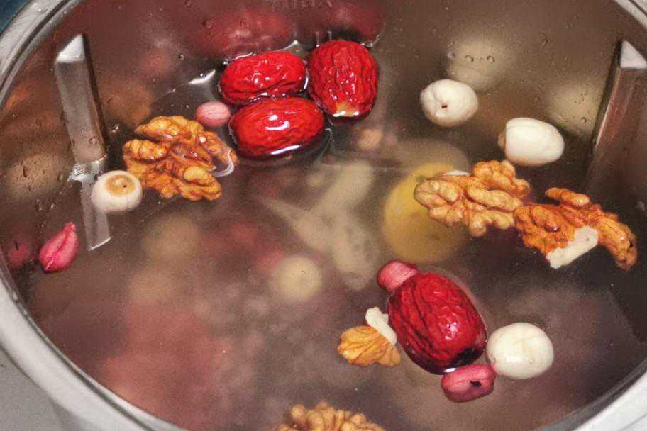 食材:黑米、莲子、红豆、桂圆、薏米、百合、葡萄干、枸杞、板栗、花生、黑芝麻、黑豆、大米、杏仁、枸杞