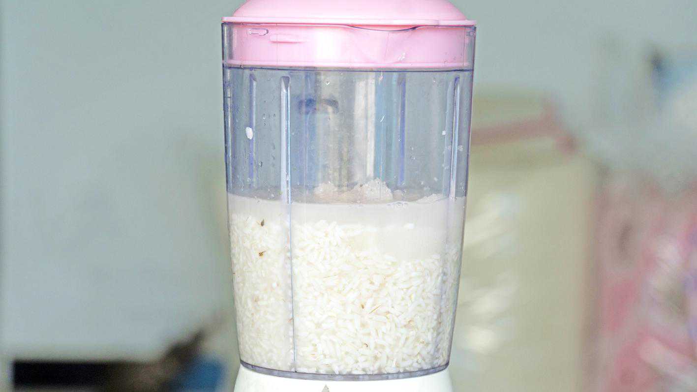2、米浆尽可能的打细腻一些,越细腻口感越好;